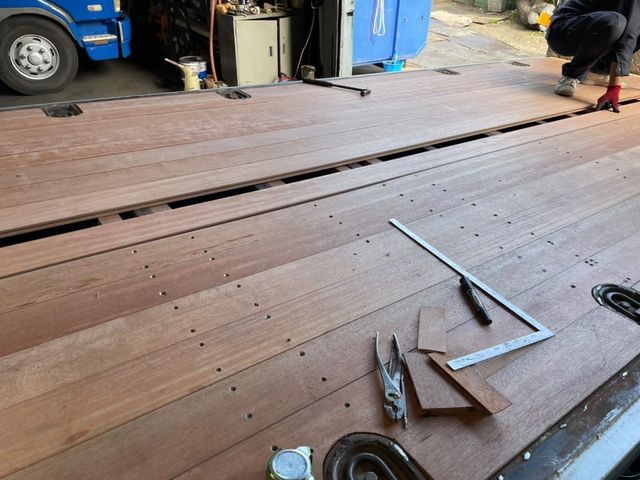 今回は4トントラックの荷台の張り替えで「アピトンフローリング」と「アピトン根太」をご購入して頂きました