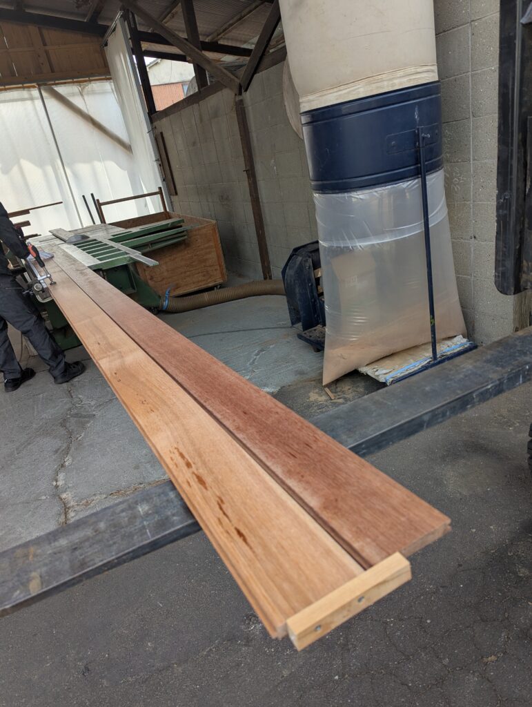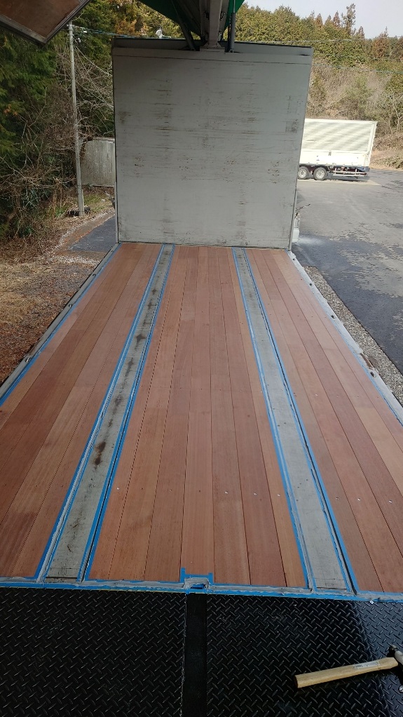 その後、両サイドのフローリングだけ「幅カット」します(荷台の幅に合わせる為)