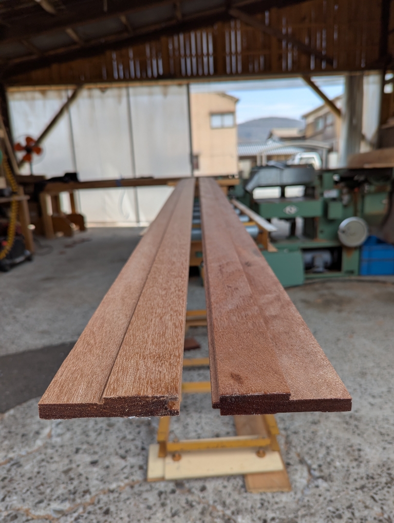 「アピトンフローリング」は高耐久性木材のフローリングの為、現場での加工が大変です